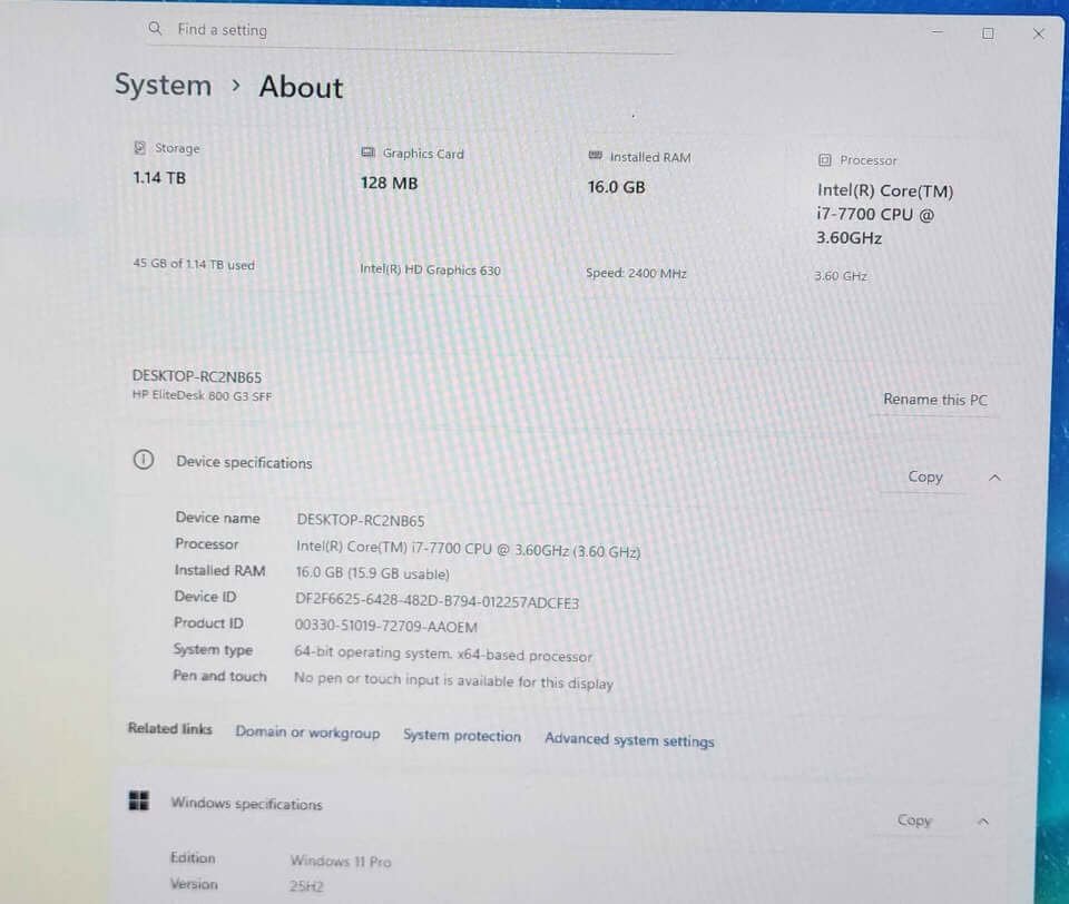 This HP EliteDesk 800 G3 SFF Desktop is Refurbished in perfect working order and has been rigorously tested to ensure full, flawless functionality. It features a spotless, fresh installation of Windows 11 Pro, ready for immediate use. For optimal performance and longevity, the unit has been meticulously cleaned inside and out, and new thermal paste has been applied to the CPU to guarantee better performance and prevent overheating. It’s truly ready for you to plug in and start using right away.